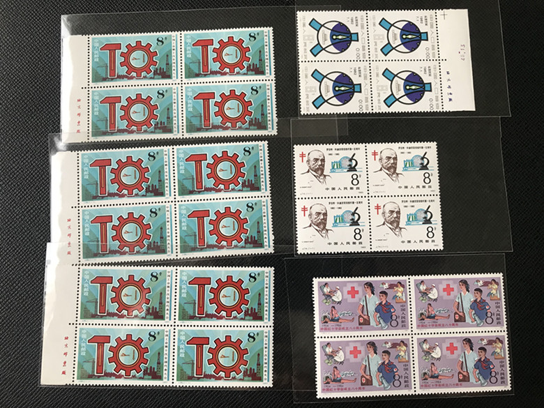 出售图中邮局一手厂铭方联牛63方,20一方、鼠方五方+五枚500元,罗伯特15.红十字20、工信18、粮食15,两个小型张重开贴,一起走包邮