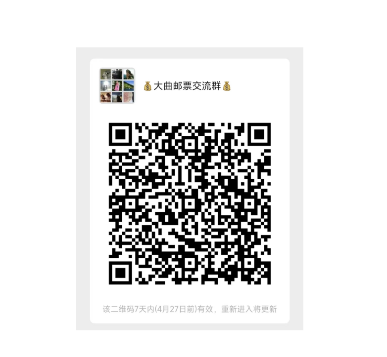 扫码加入“大曲邮票交流群”,群里不定时有福利和拍卖活动,欢迎大家加入!