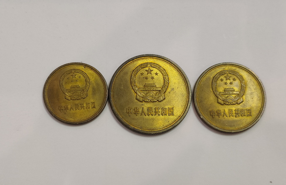 → 出三个1983年长城币五角一角二角