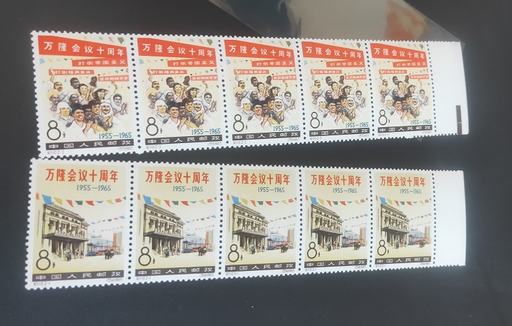 万隆会议版撕全品的。原胶5连。450元