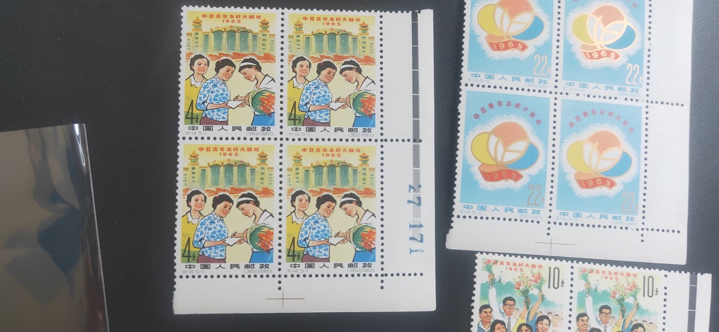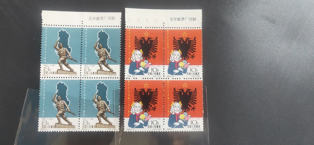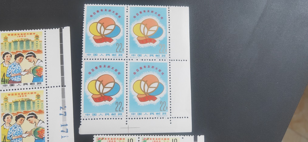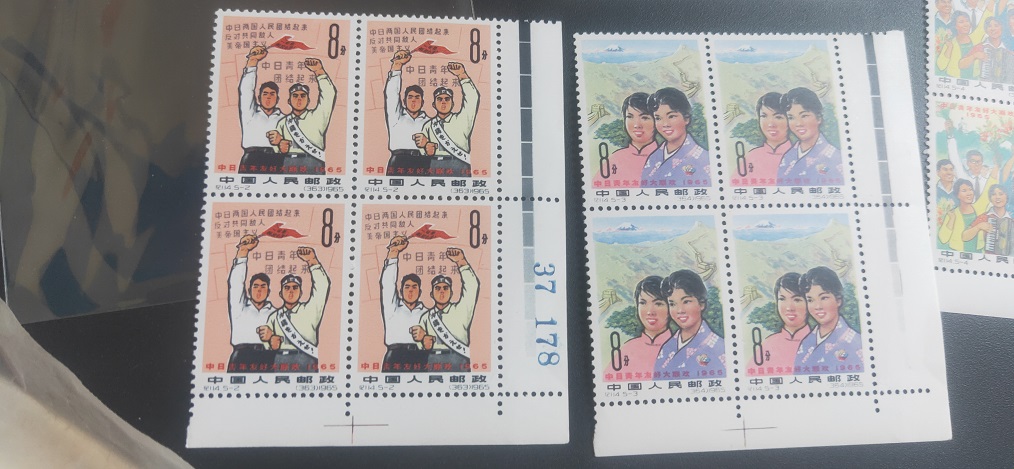 纪114中日原胶 角方连。肉眼收藏级全品。去评级过灯个别地方有暗黄点。边纸个别瑕疵。800