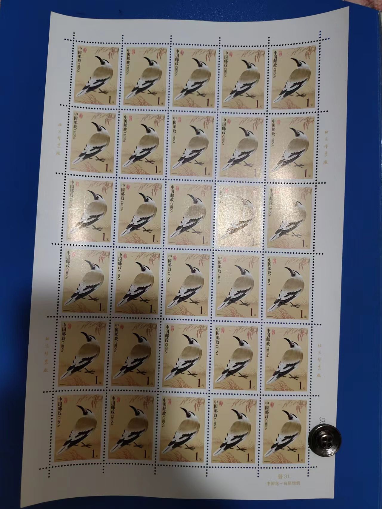普31中国鸟1元面值完整版,无背戳好品票,每版 21元, 50版起售包普包保价邮寄。