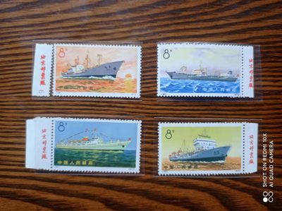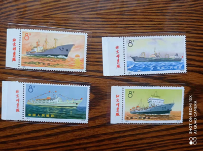 1、轮船左厂铭一套,齿孔不折,除红船背有一天然纸质点和一小粘外,其余都面艳胶白,1800元;