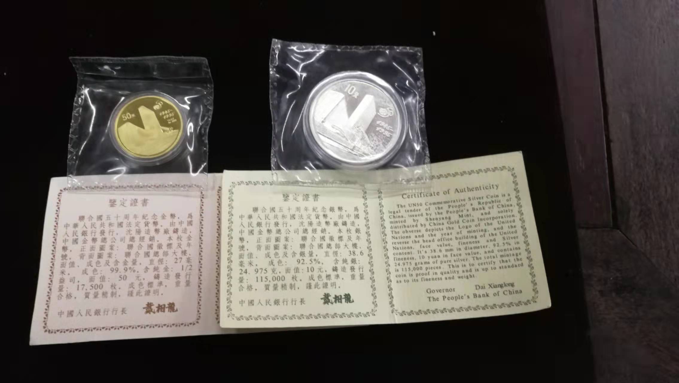→ 老精稀95年联合国1/2盎司金币+27克银币