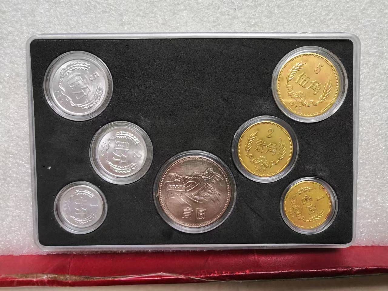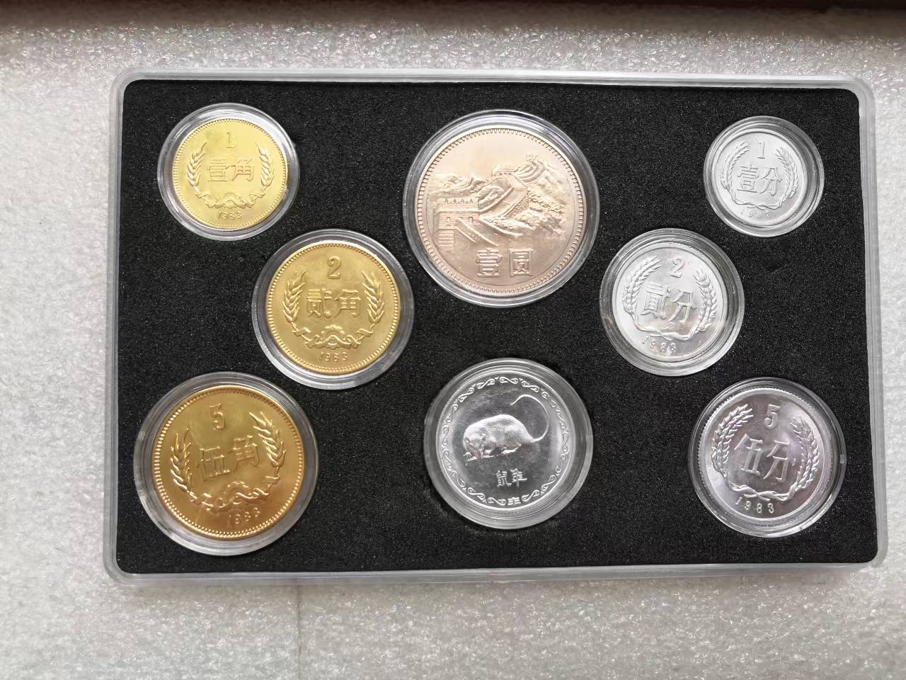 83年长城套币2套,实物拍摄带光带鼠章这套售2180元无磕碰无氧化,另一套无磕碰有轻微正常氧化售1860元,包品如图包真。