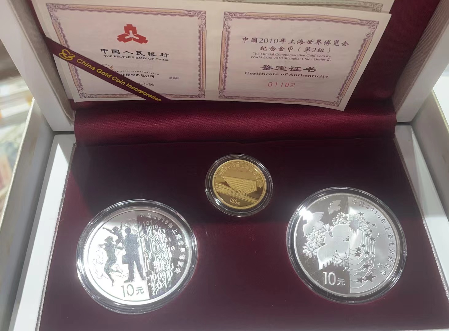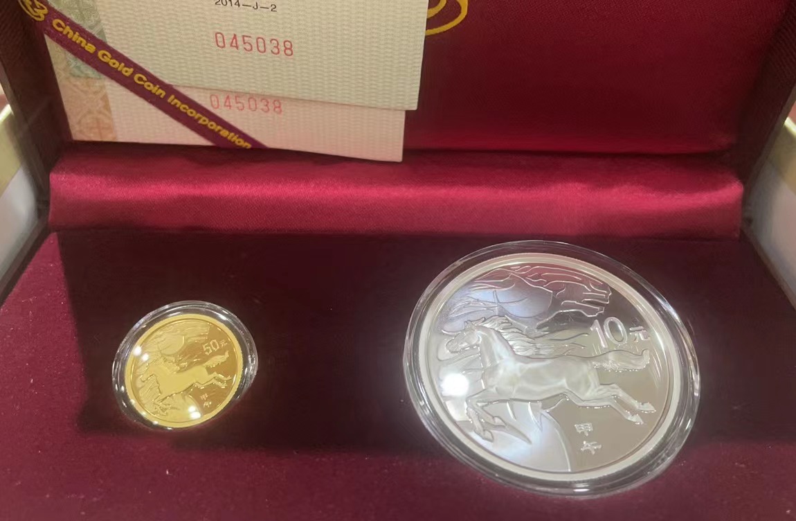 2010年上海世博会金银币第二组,4550元;2014年本色金银马,3550元。
