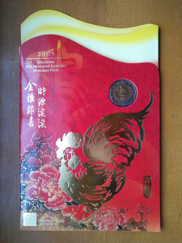 新加坡2005鸡年纪念册(含5元双色币);售价100元包挂!品如下图: