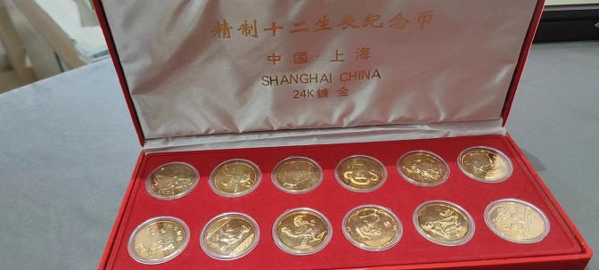 第七八图:狗猪拜年章10克银章55.0,法门寺一盎司银章200.0,中秋节银章40.0;