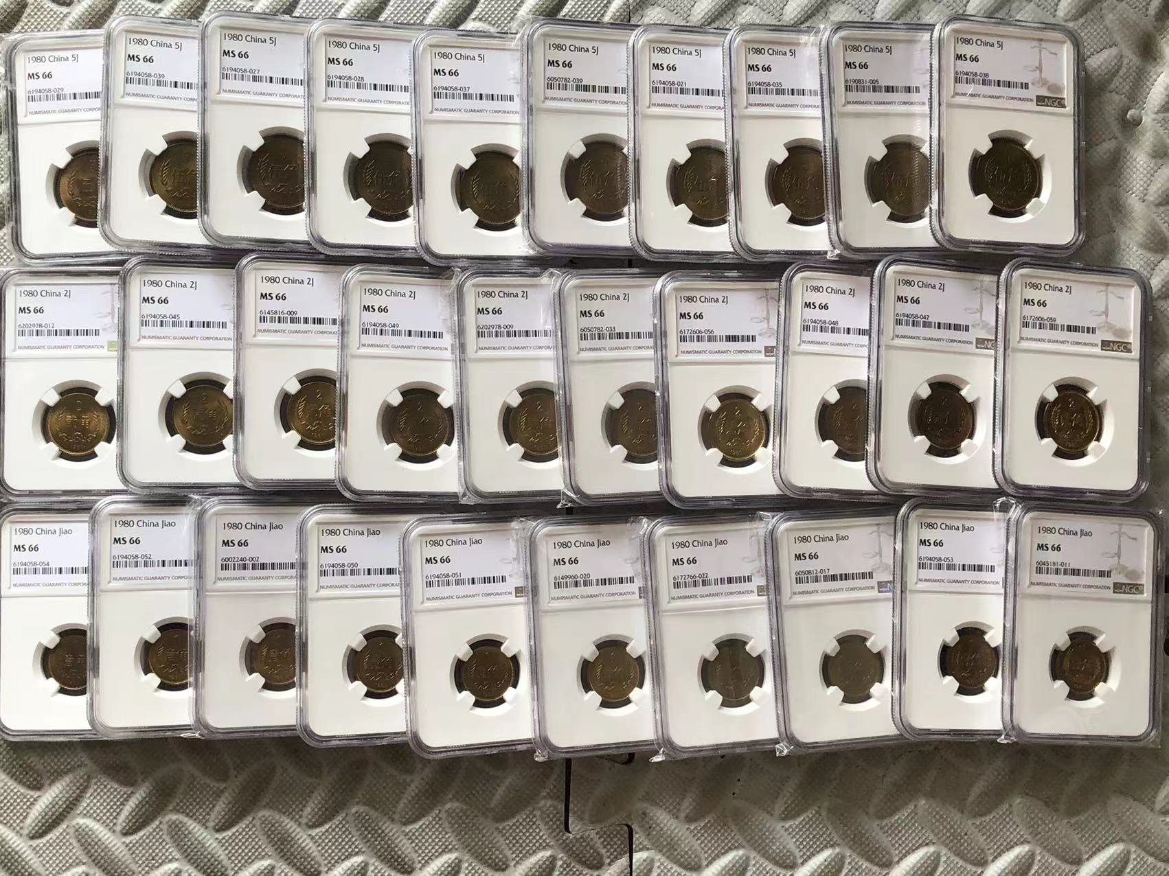 卷拆红铜1980年长城角币NGC MS66全同分10套 无养护 1550元/套 一起走包快