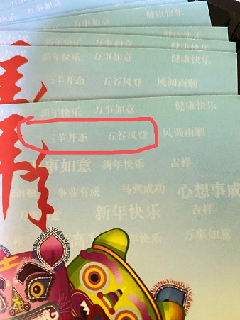 出售错字版五谷风登 三阳开态虎年明信片