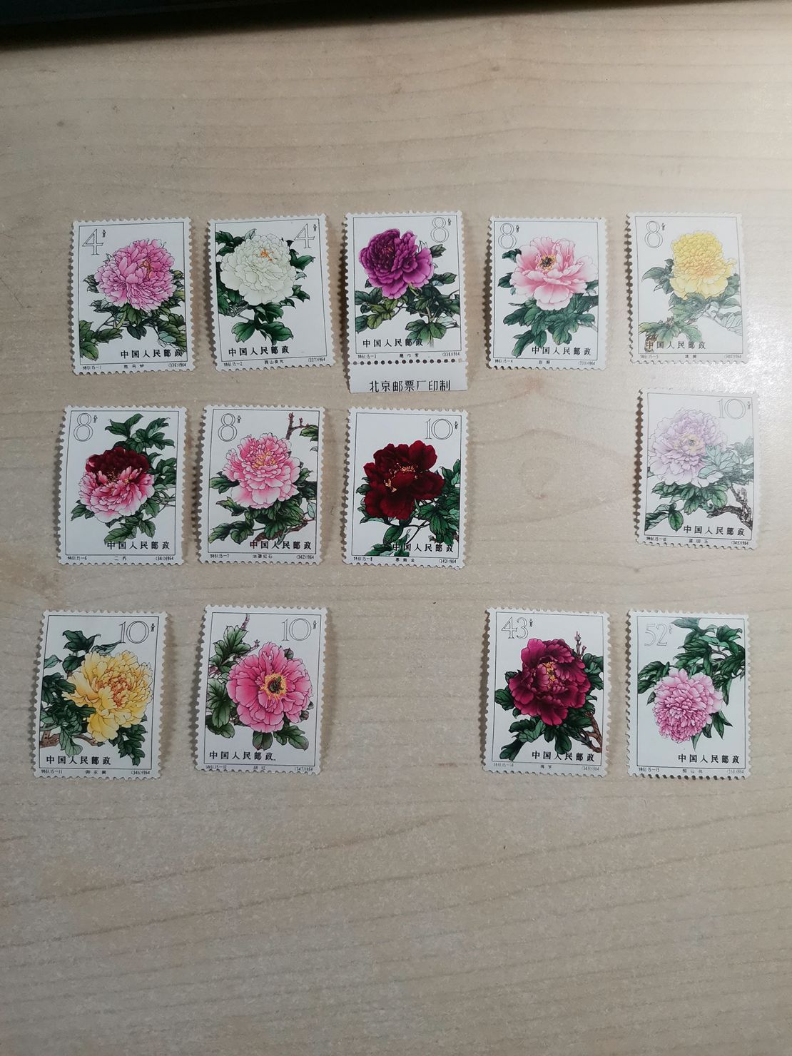 继续调整价格。牡丹邮票,品一般,原胶。少两枚(9,13)。3700元,继续