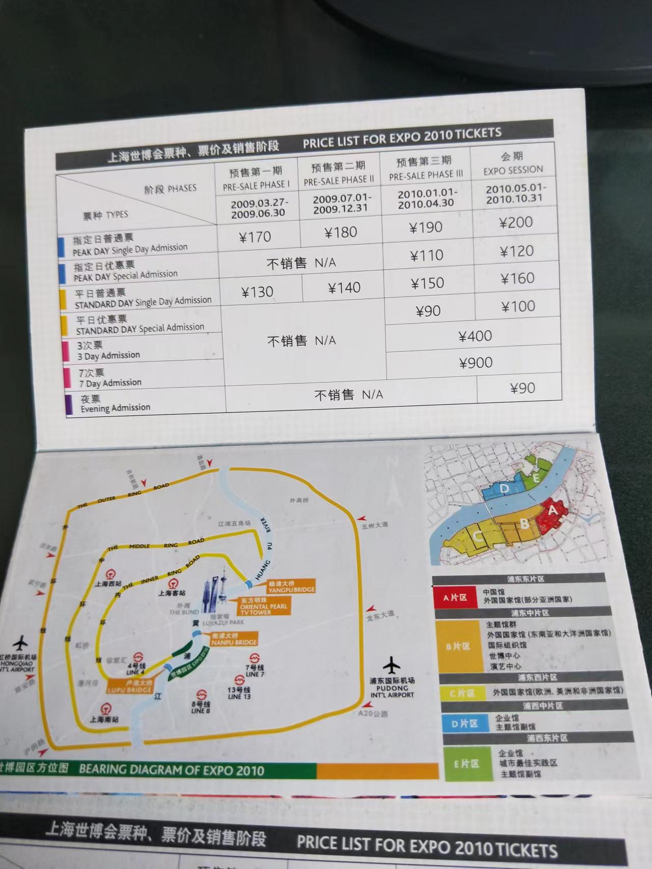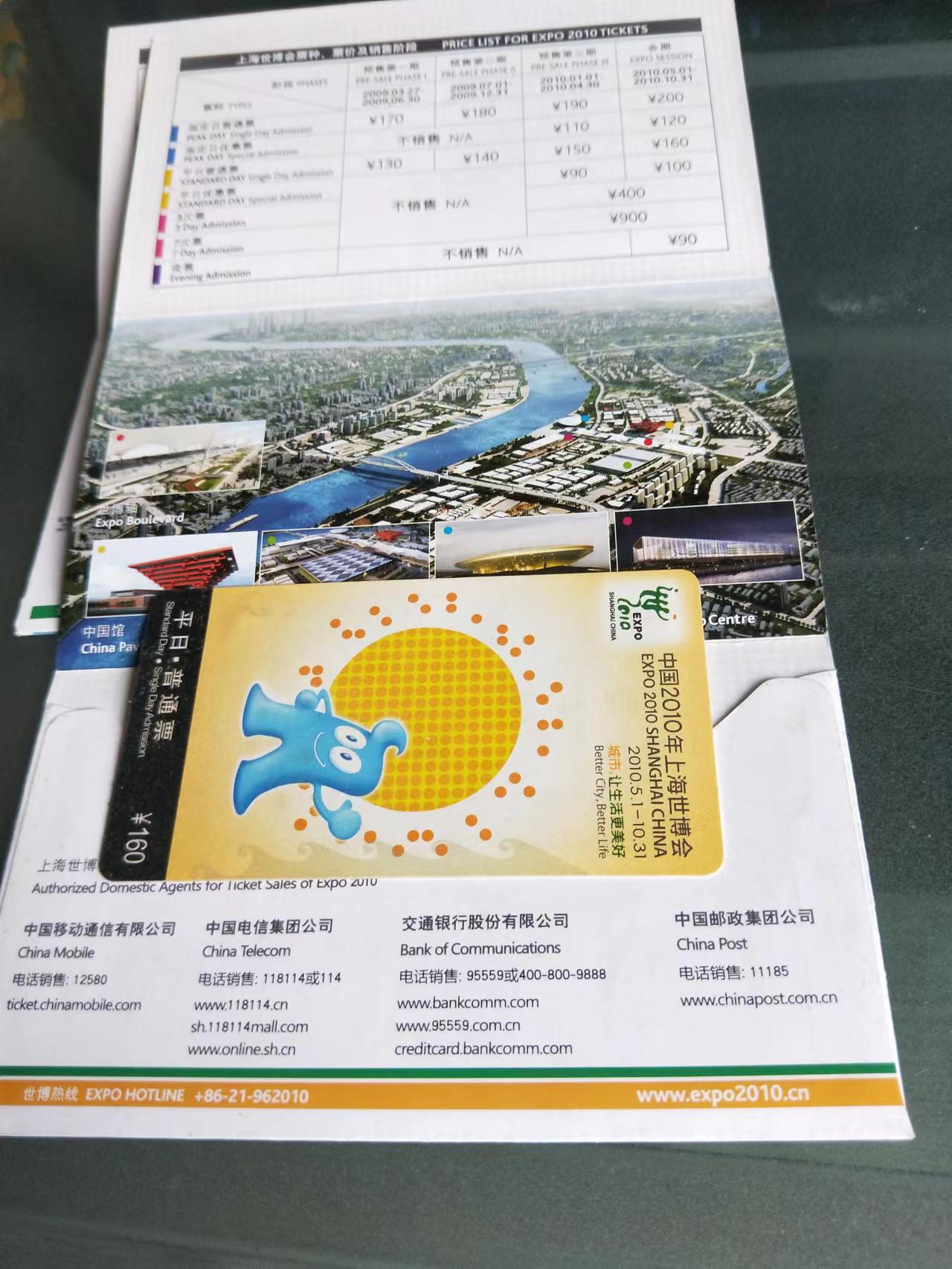 2010年上海世博会门票两张(未使用)平日普通票票价160元人,上不了图有意微信看图,两张一起660元