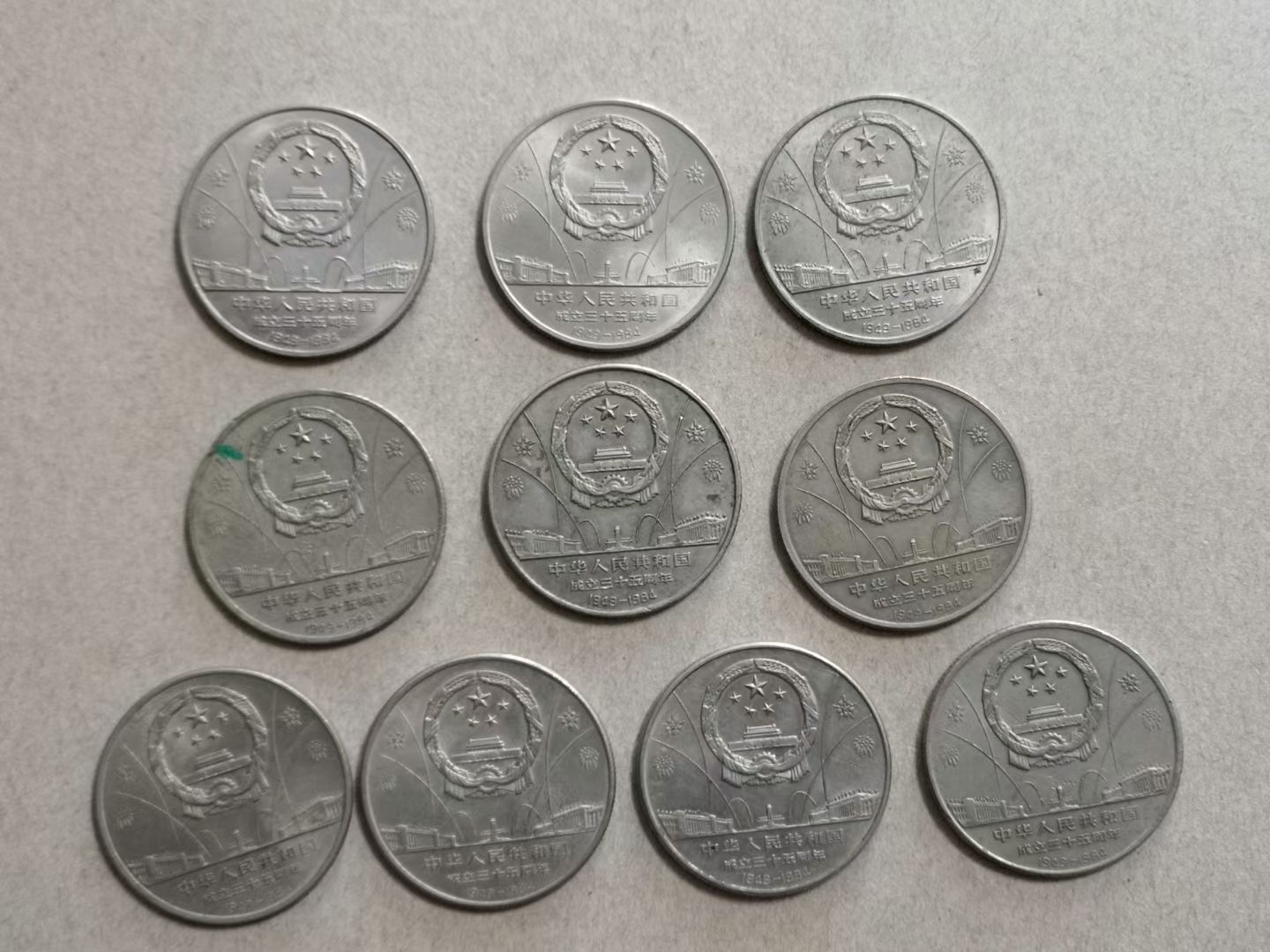 出纪念币建国三十五周年欢庆、华表共1枚