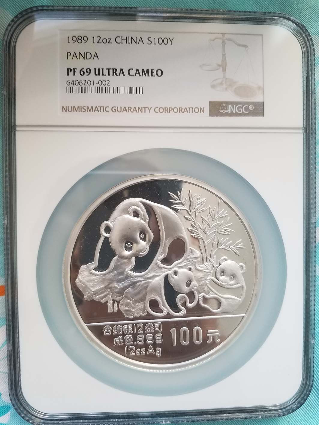 1989年熊猫银币12盎司 NGC69