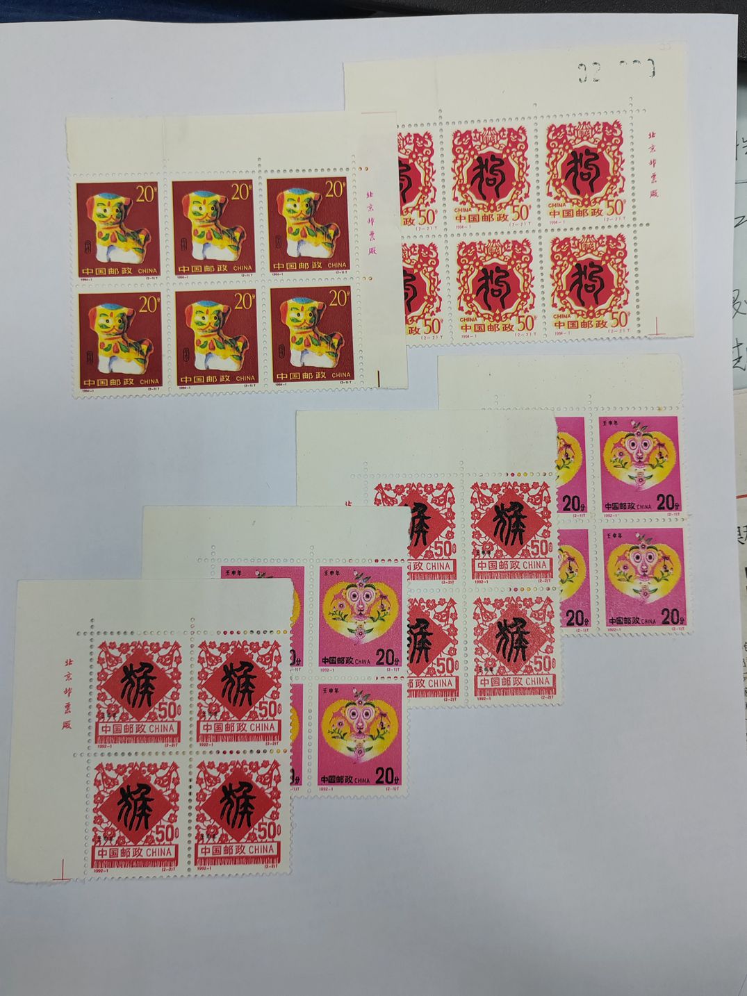 二轮生肖猴,狗方连等共计32套,按1.5元一套