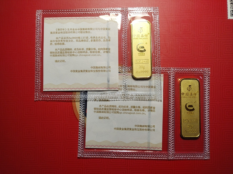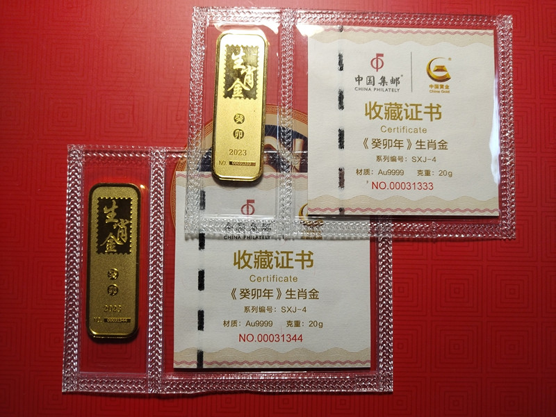 中国集邮中国黄金联合发行,《癸卯年》生肖金,编号: SXJ -4,Au9999,每个20克。