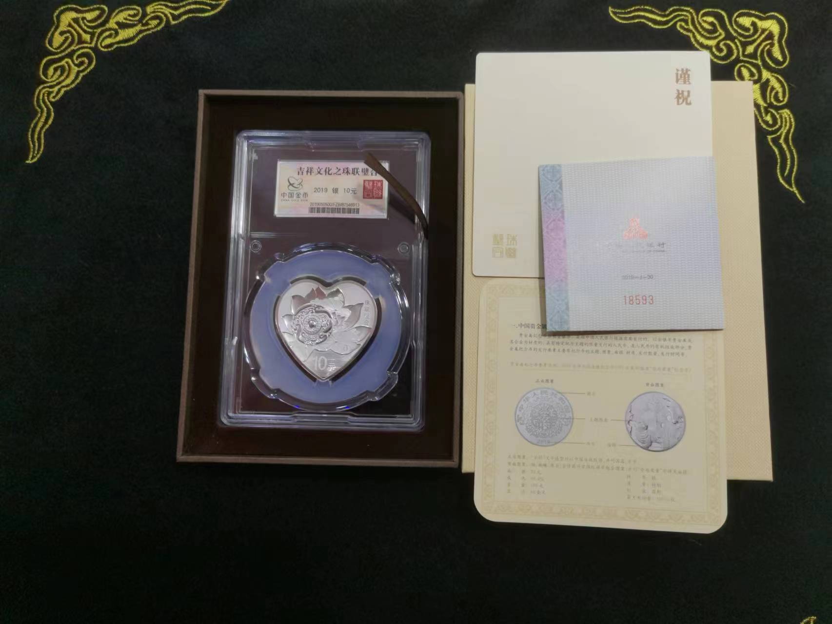 售:2019年金总封装珠联璧合一枚,原盒证证书号无四七,品如图,1360元包顺丰。