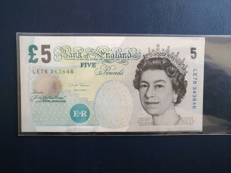 场外南京郭总(郭晨)确认英国5镑全新纸币九张,三包无折品无肉眼黄斑安全到手。