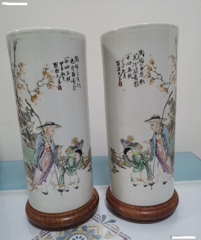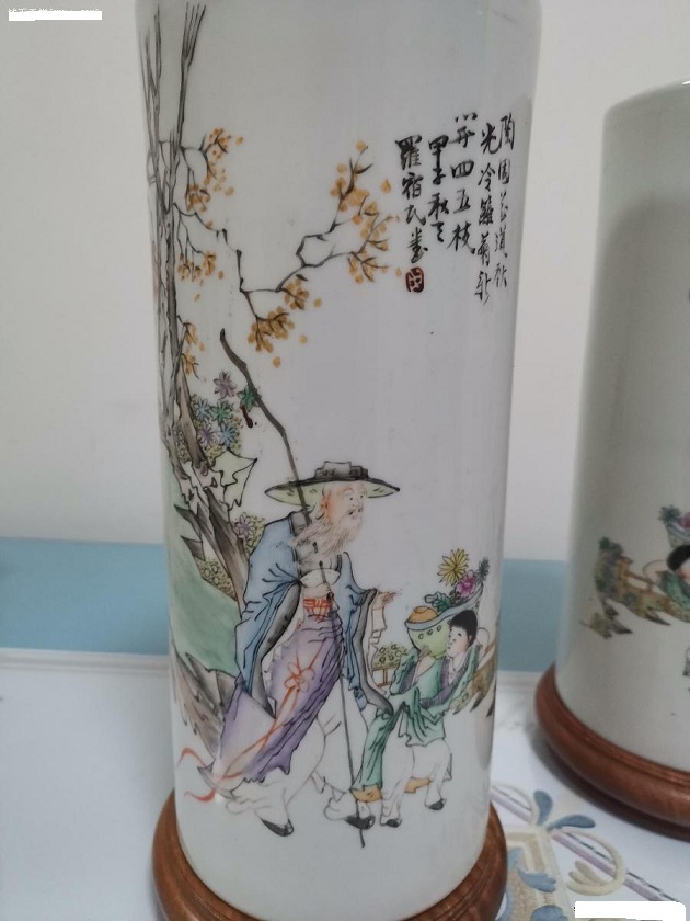 → [贴图]名家罗宿民绘粉彩人物帽桶一对