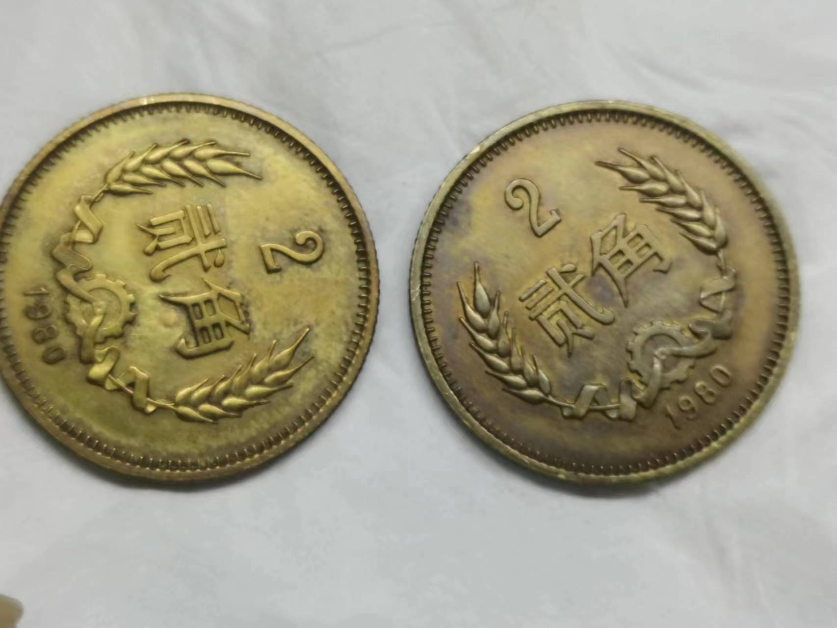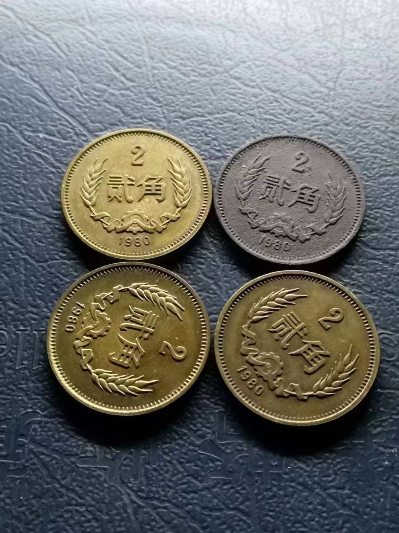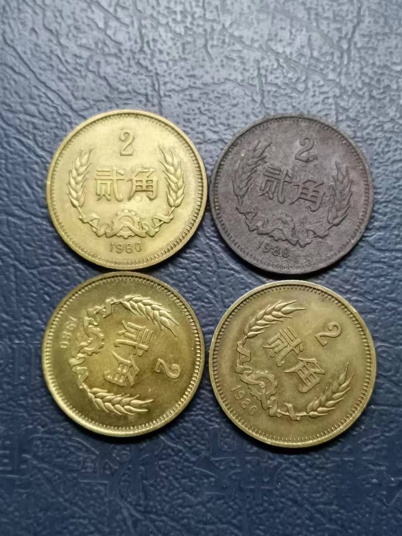 1980年二角4枚同售,如图所示,540包邮发挂号,从广西柳州发货