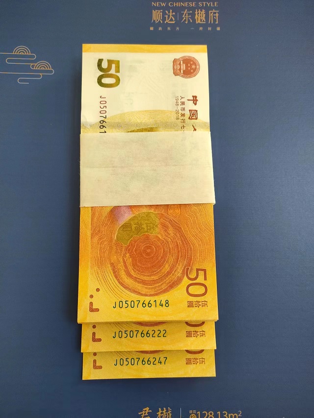 确认给宁夏朋友韩先生189****3697的朋友一刀滚刀跳一张的70钞一刀,号码为J049638233-J049638333(跳尾号274号),款到发货,合作愉快!