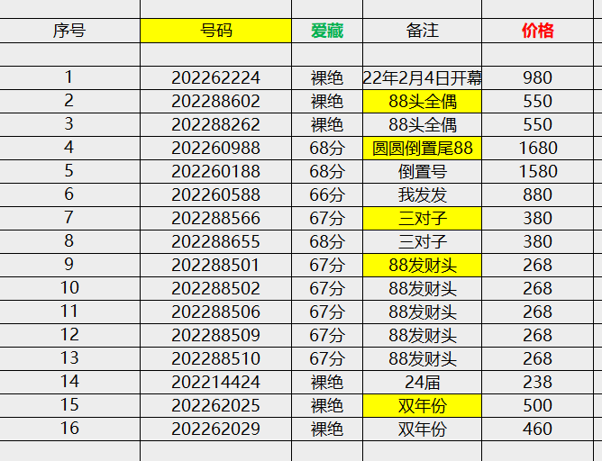 ,冬奥永恒记忆,号码,价格如表格,看懂的上车~ 微信电话182 066 43210 确认