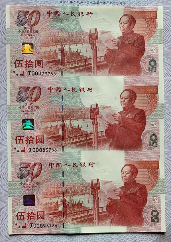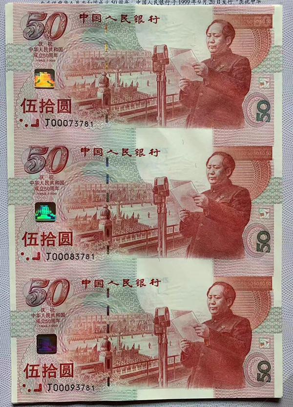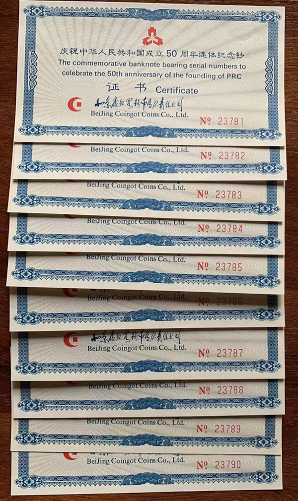 出售建国三连体10连,钞号00073781-00073790,证书号23790,价格16万。