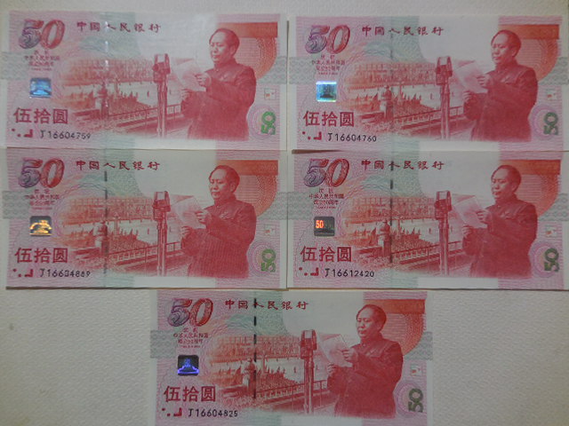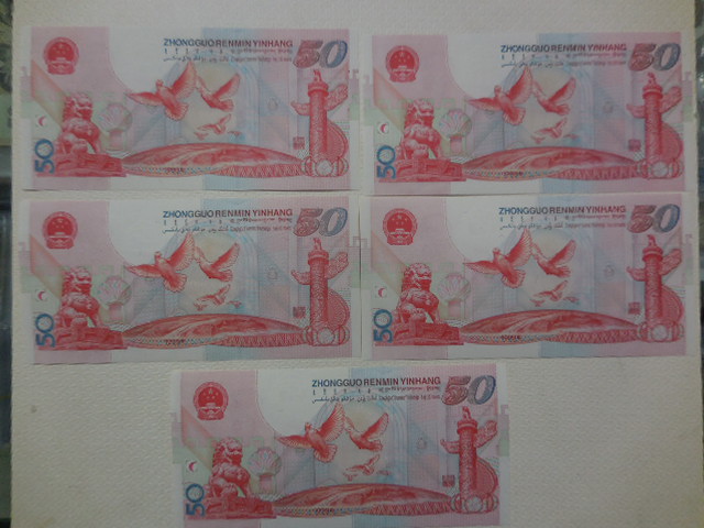 → 售5张全新建国钞