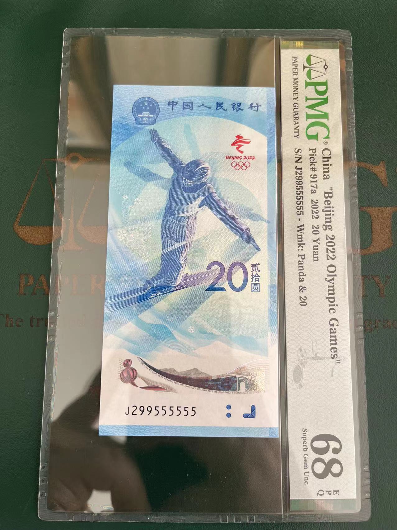 雪钞:J299555555 PMG68E,一张