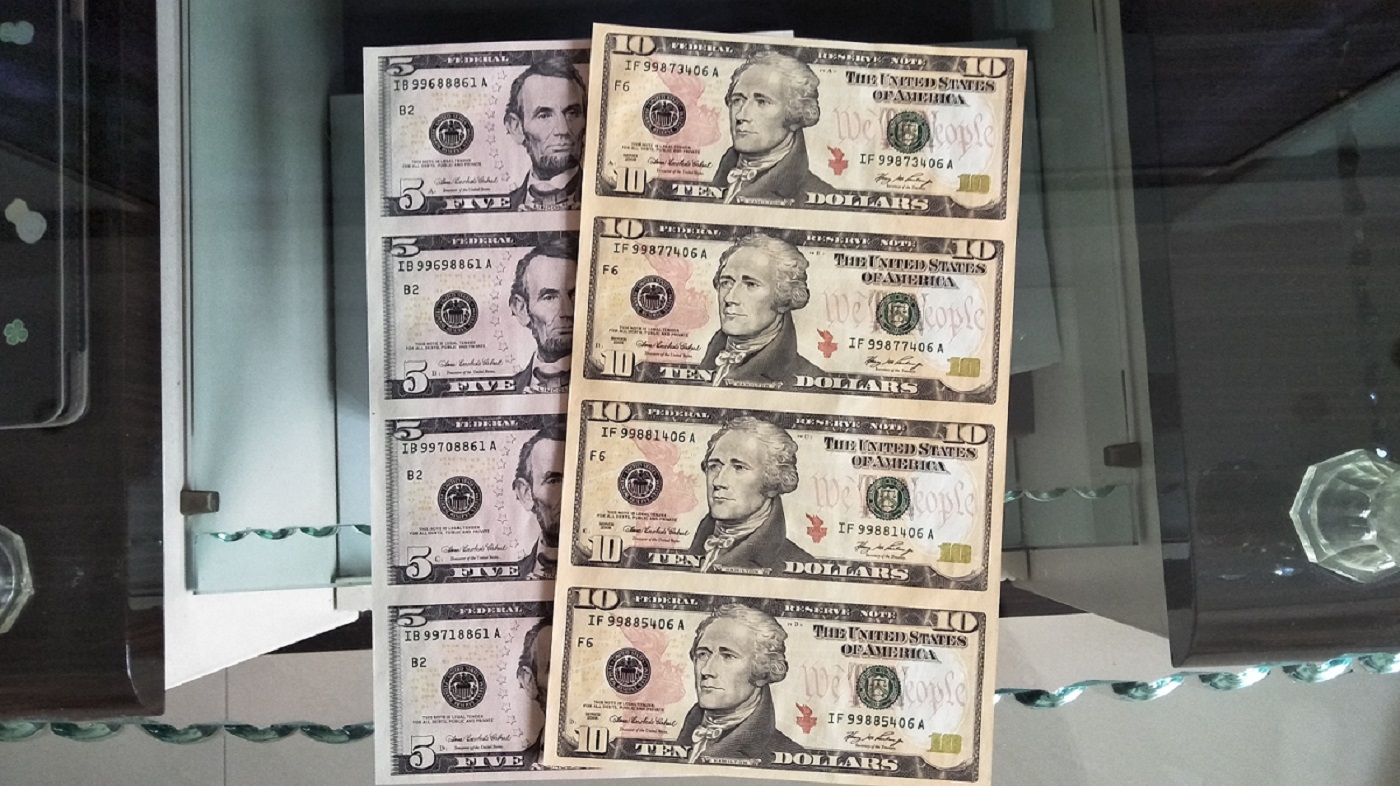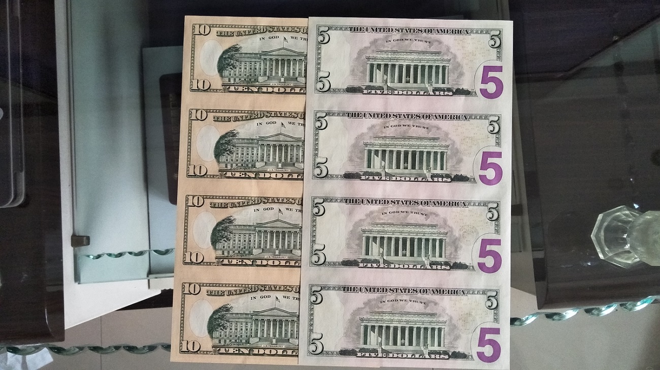 → 出售:5美元四联体、10美元四联体各1张