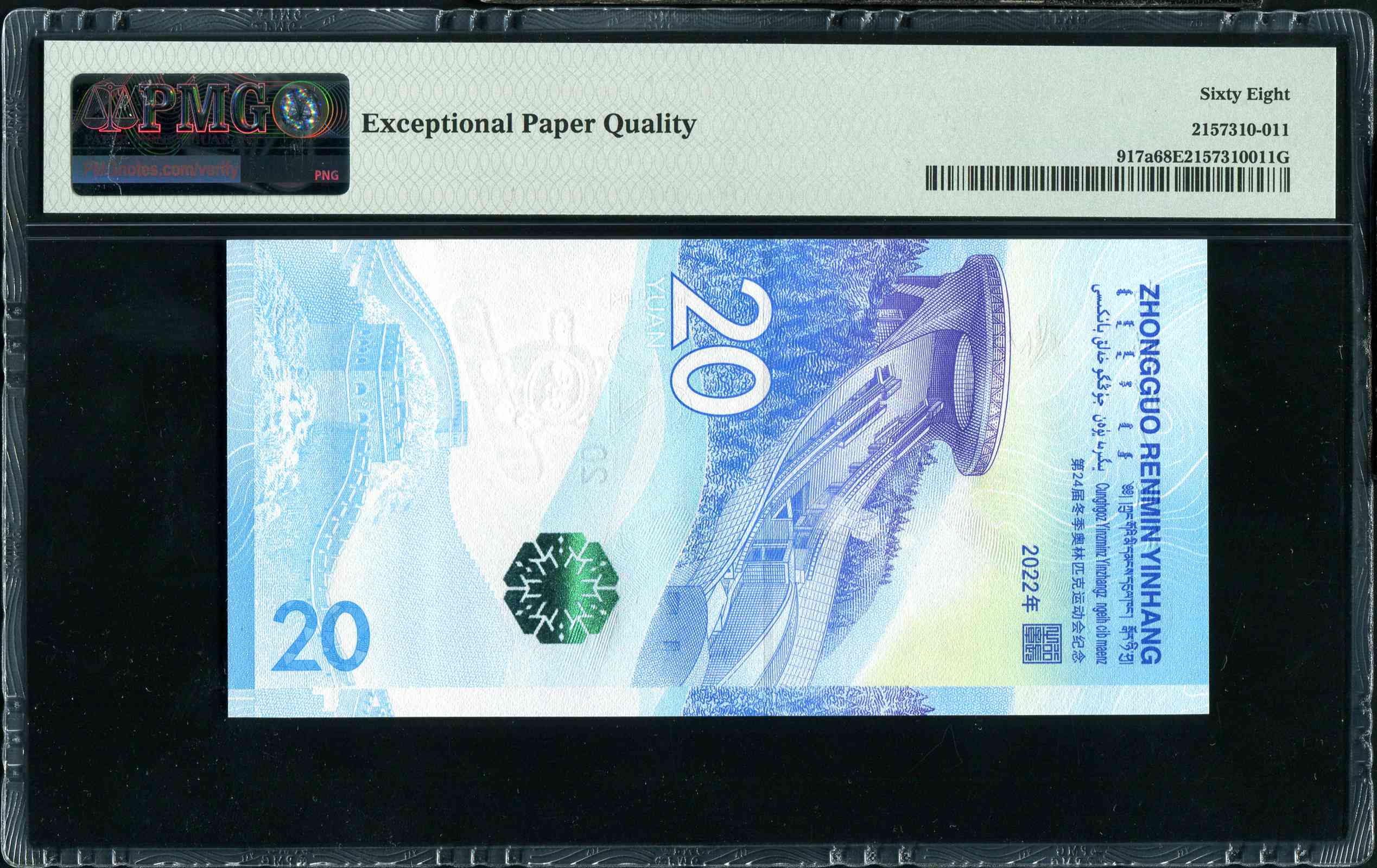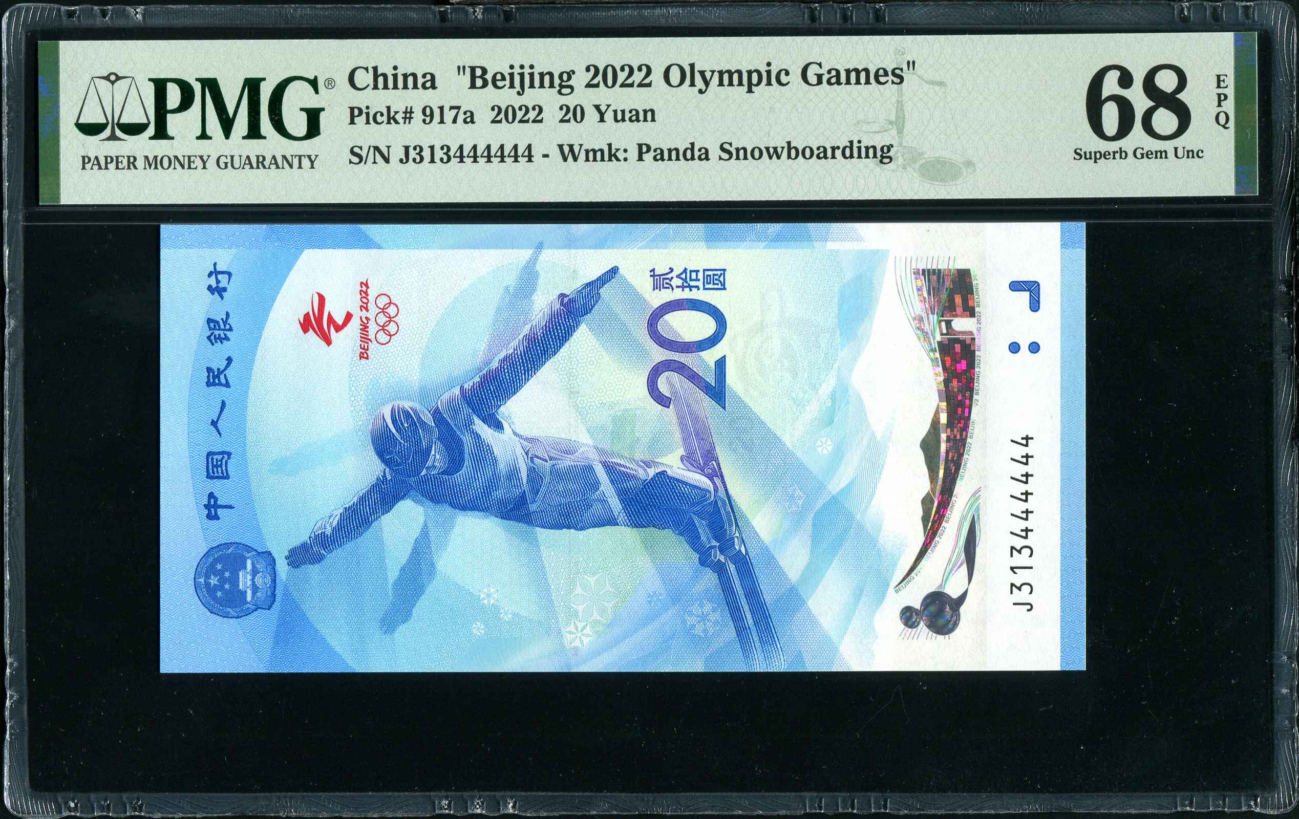 2022冬奥钞,雪三PMG68:J313444444,1280三包顺丰快递。