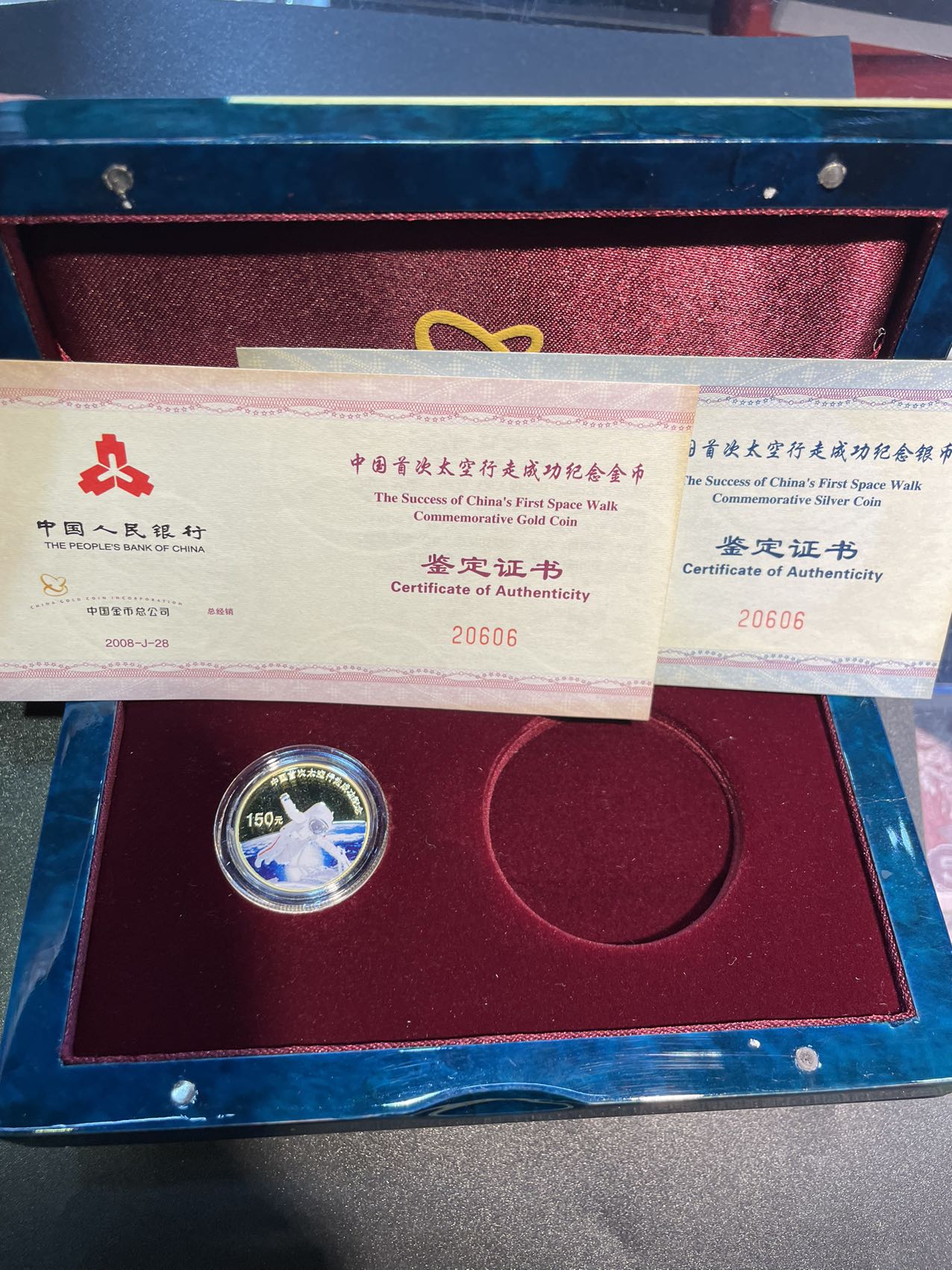 → 接近金价4600低售08年太空行走1/3盎司金币一枚,证书号无3457
