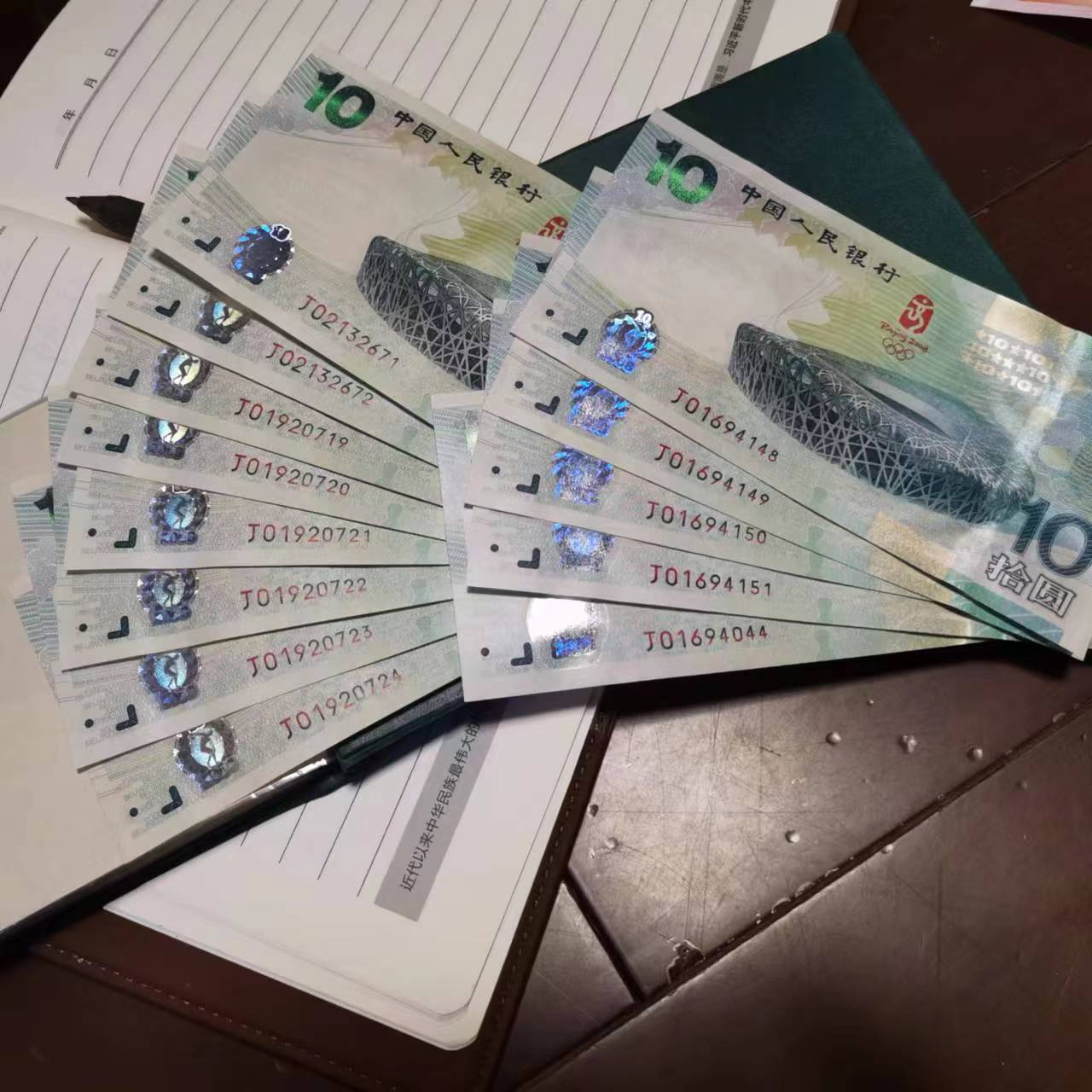 奥运钞13张(其中6张生日号),号码如图,3200元/张。全部全品