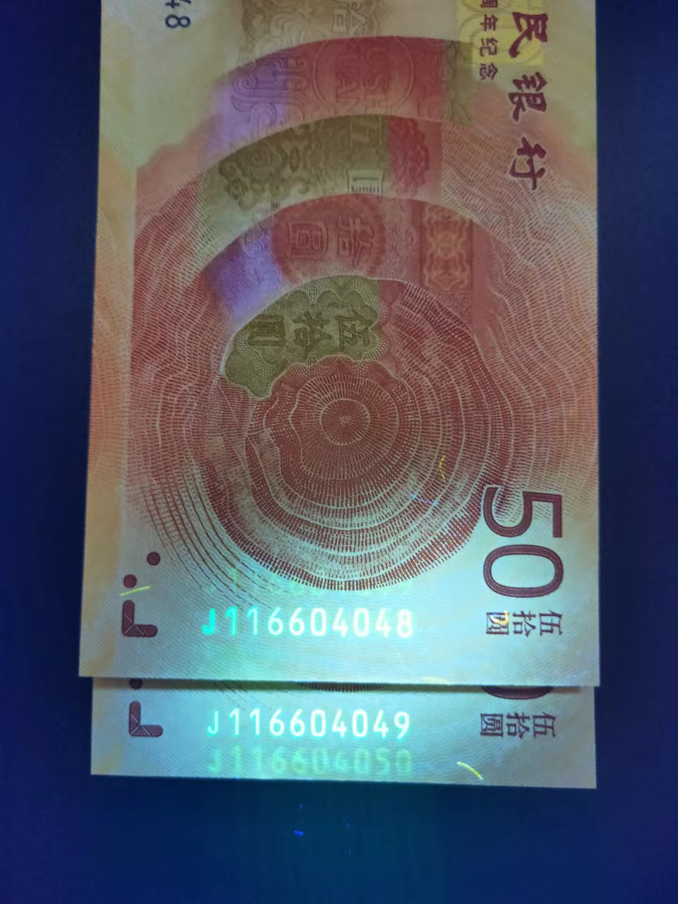 70钞荧光双码清晰(上、下码)一对,刀拆品绝,荧光效果如图,二枚(裸钞)一起走6800元包真包邮。