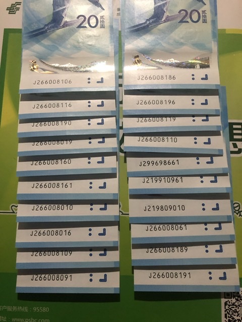 冬奥钞2后倒置号35张 25元/张 一起包品包邮