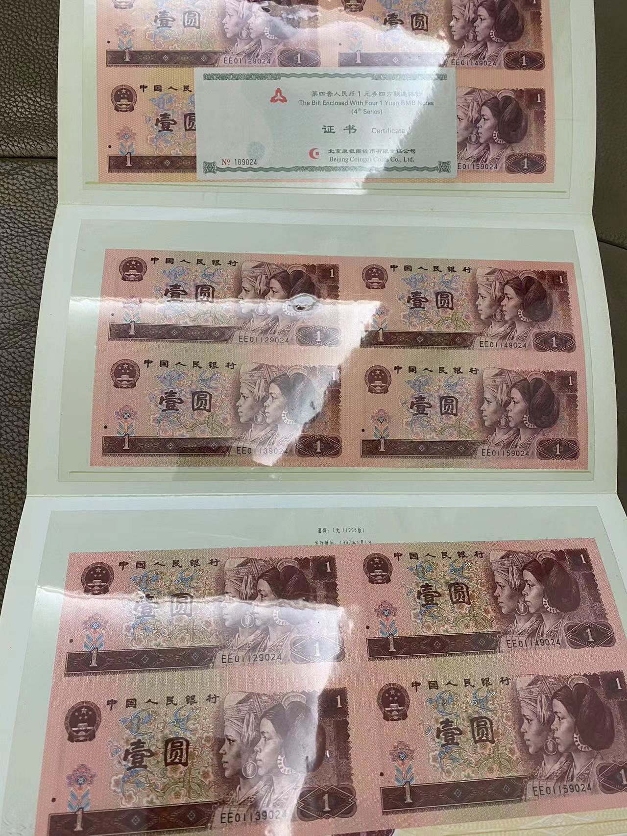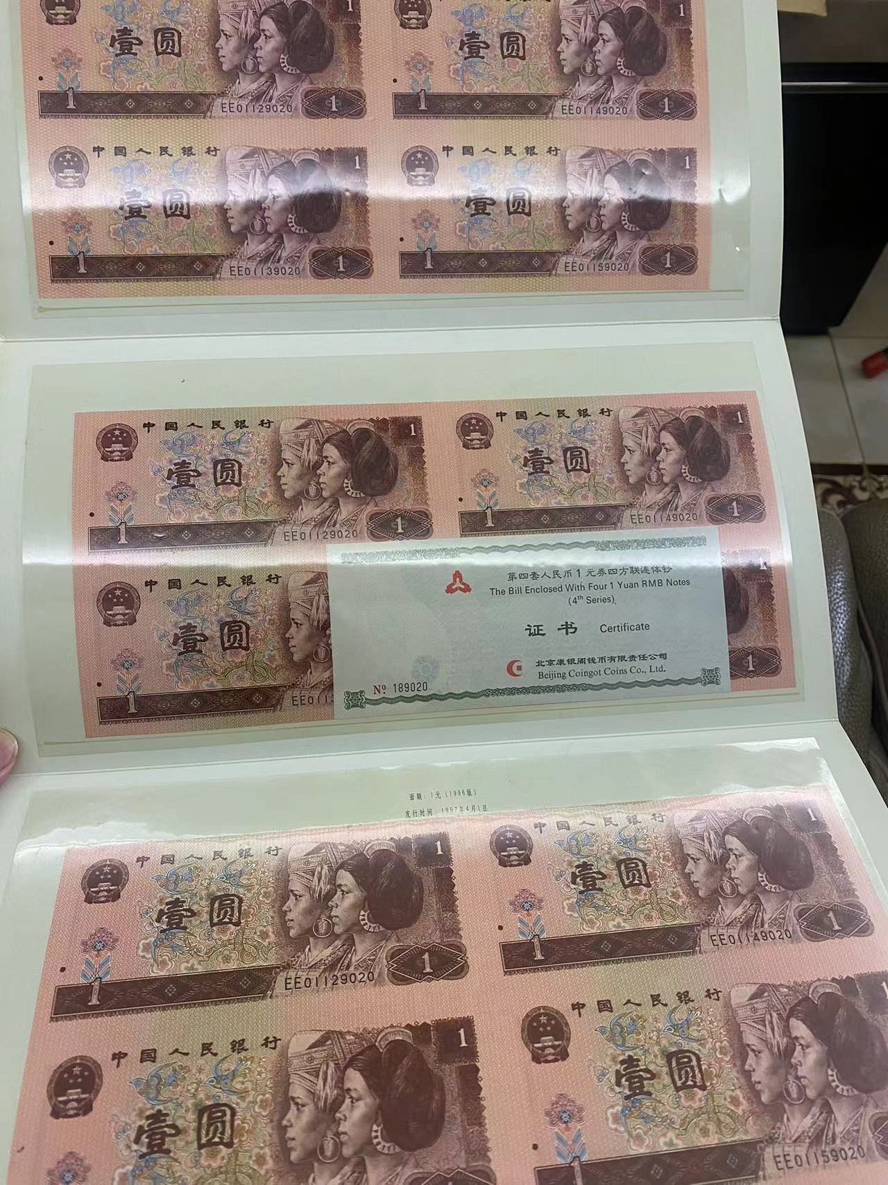1元连体钞。1500元一套,2套。总价3000元。证书号码对号