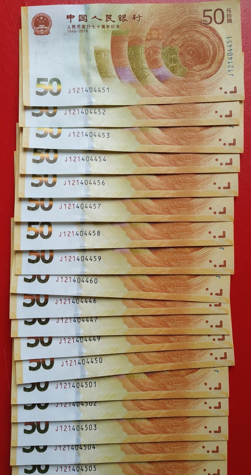 70钞45张X65元,有18张是补号。通走