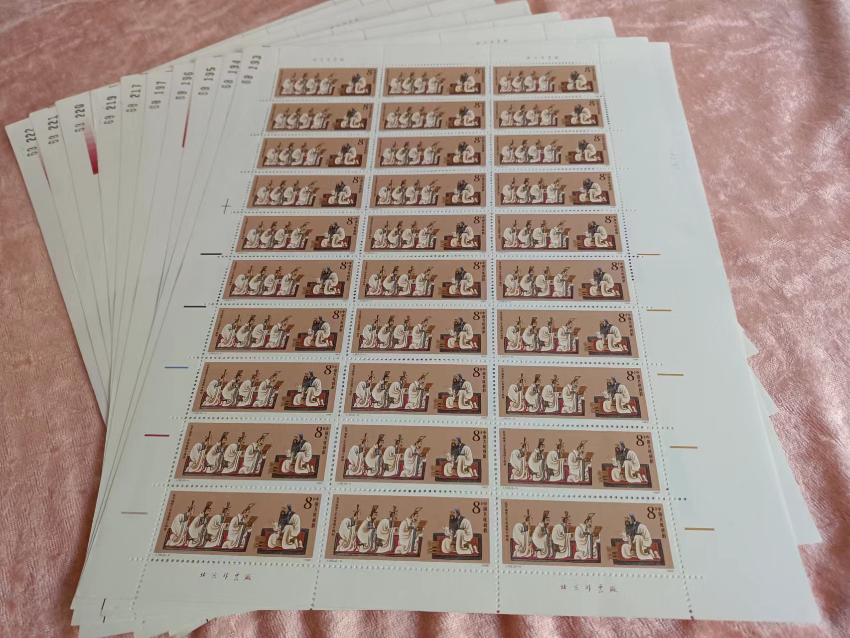 出让尚未流通过的T162(孔子)10版,面艳背白,一级品相,每版260元,外加14套零票(其中有一方联,有一铭版单套,有一铭版双联)每套7元,不零卖一起走,合计2698元。款请打我农行卡,款到即顺丰发货。)