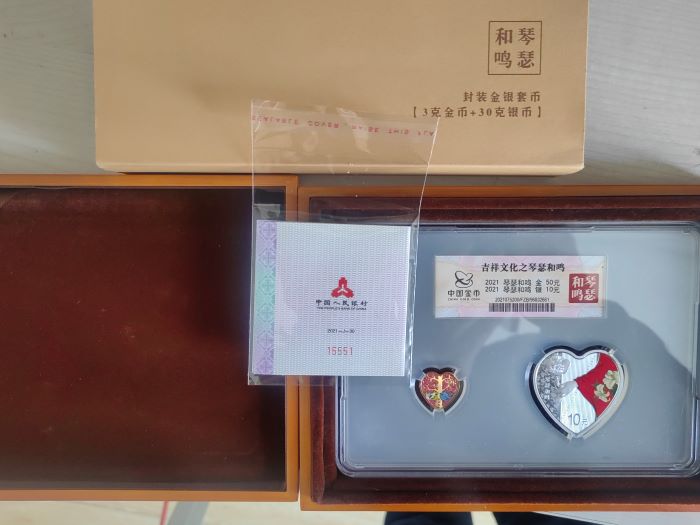 → 出2021年琴瑟和鸣金银套币,金总封装证书15551