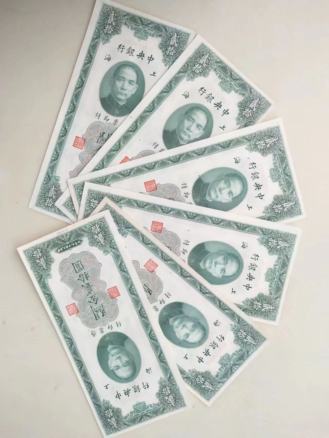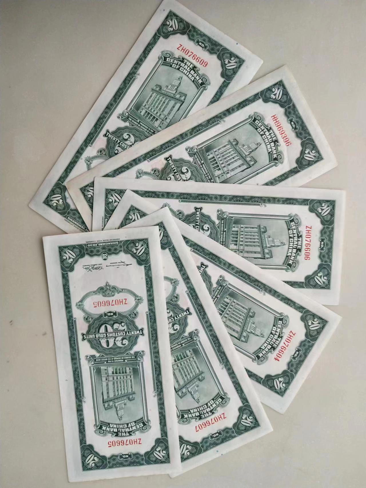 关金二十,6张断连号, 50一张