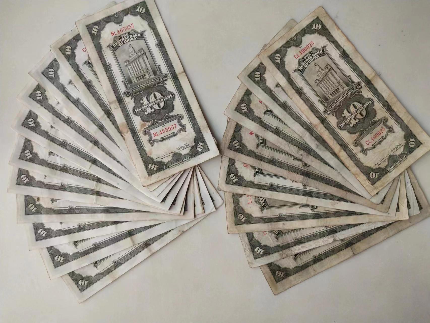 关金十元 19张, 通走25一张, 一起包邮