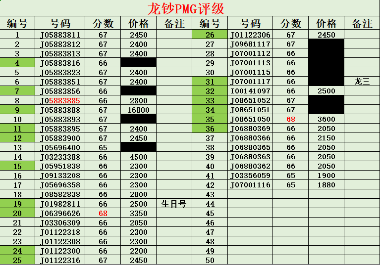出售龙钞,奥运钞,建国钞,双龙钞PMG评级,价格涂黑的部分已售,确认前请和卖家核对,多网销售以卖家跟帖确认为准,包邮到手。新帖开旧贴撤