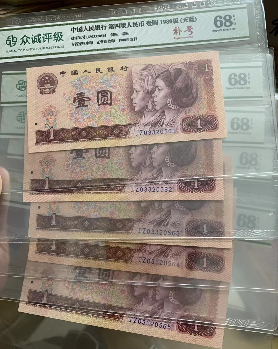 售801JZ033开头正宗天蓝补号,正宗进口数字天蓝油墨:苏麻离青、天蓝:“一眼清.一眼蓝”为特征,801JZ03开头发行本来就少.何况经历消耗.流通.所剩无几了.现在非常稀少的,全程不带47的精品、全新评级品相.评级了:有保障.好保存.好收藏.好投资.好欣赏.好把玩.好买卖.好直播.又便宜,可遇不可求的价钱、你值得拥有.....