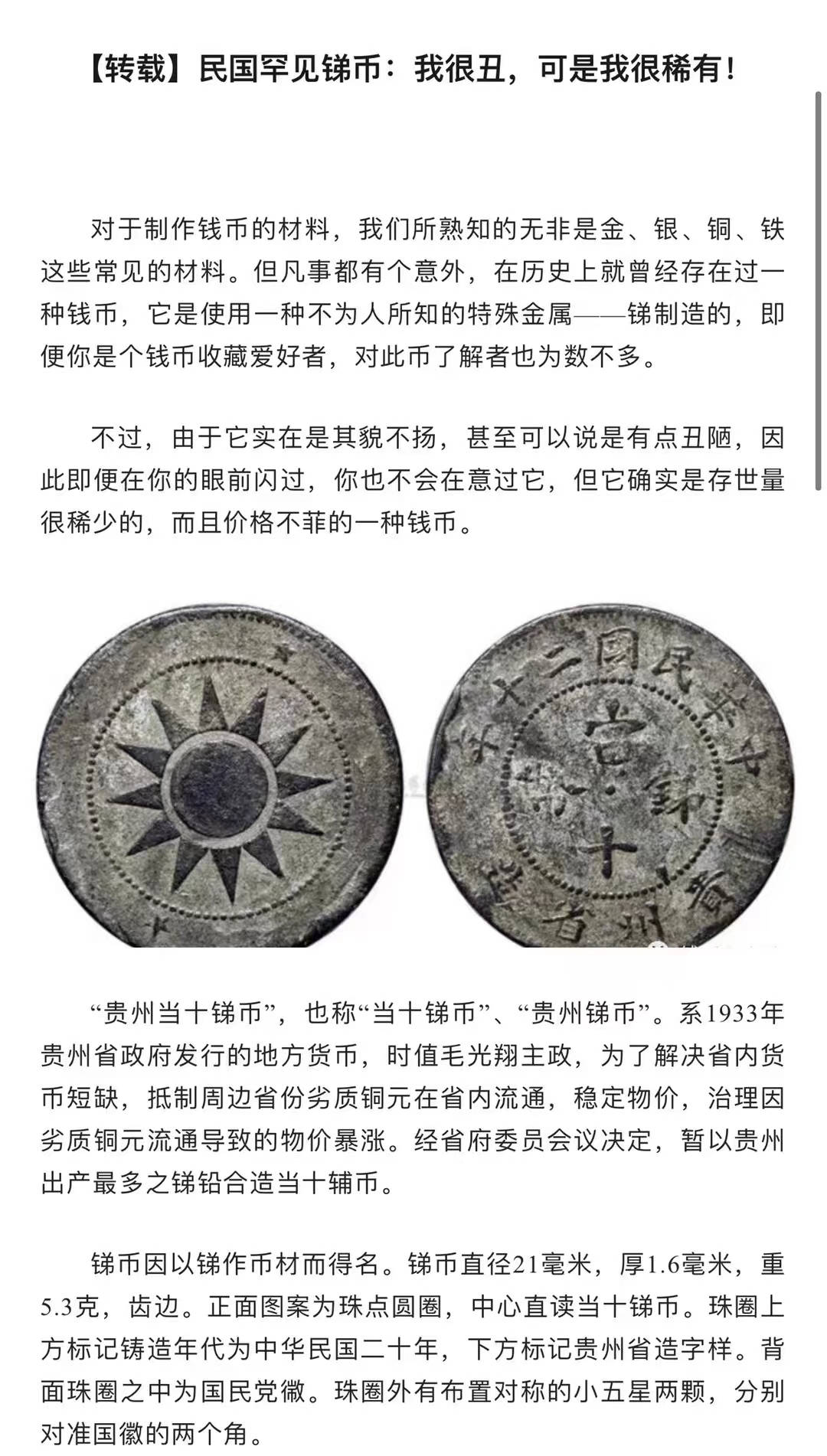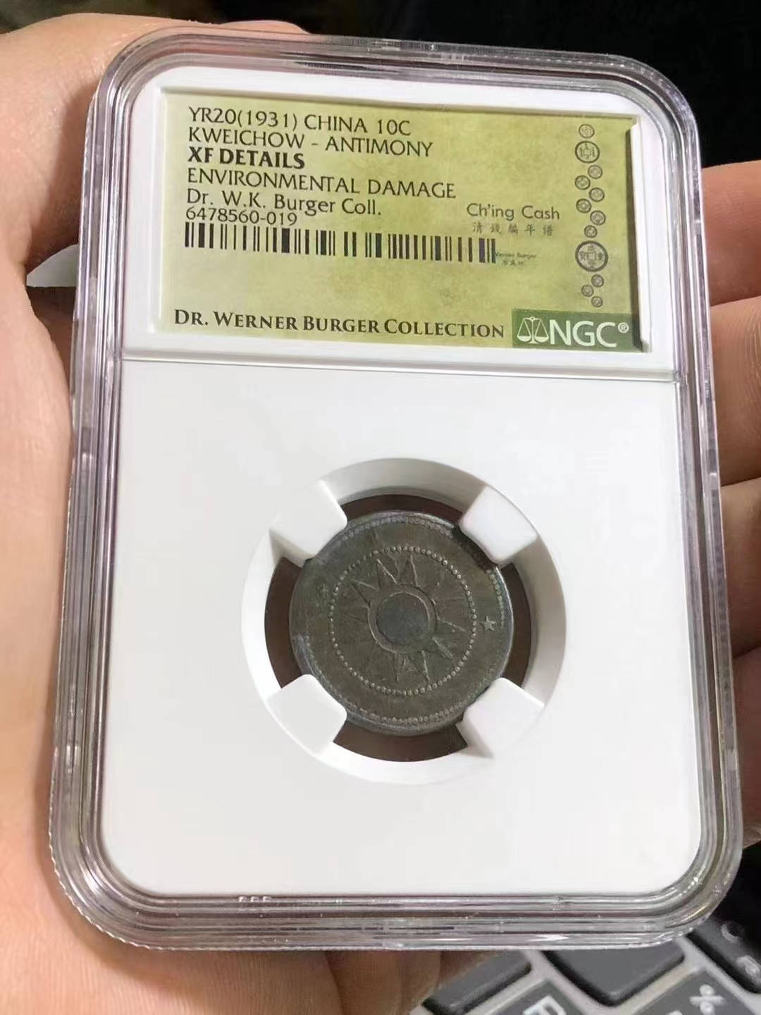 投资资讯网交易在线钱币大卖场评级币评级钞 → ★罕见 名家旧藏 贵州 “当十锑币” 美国NGC评级XF