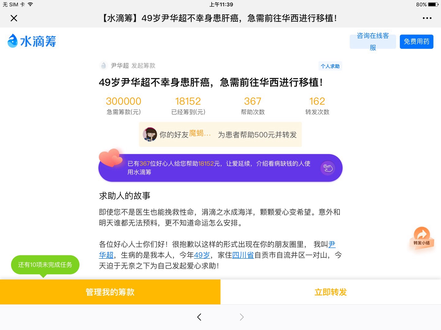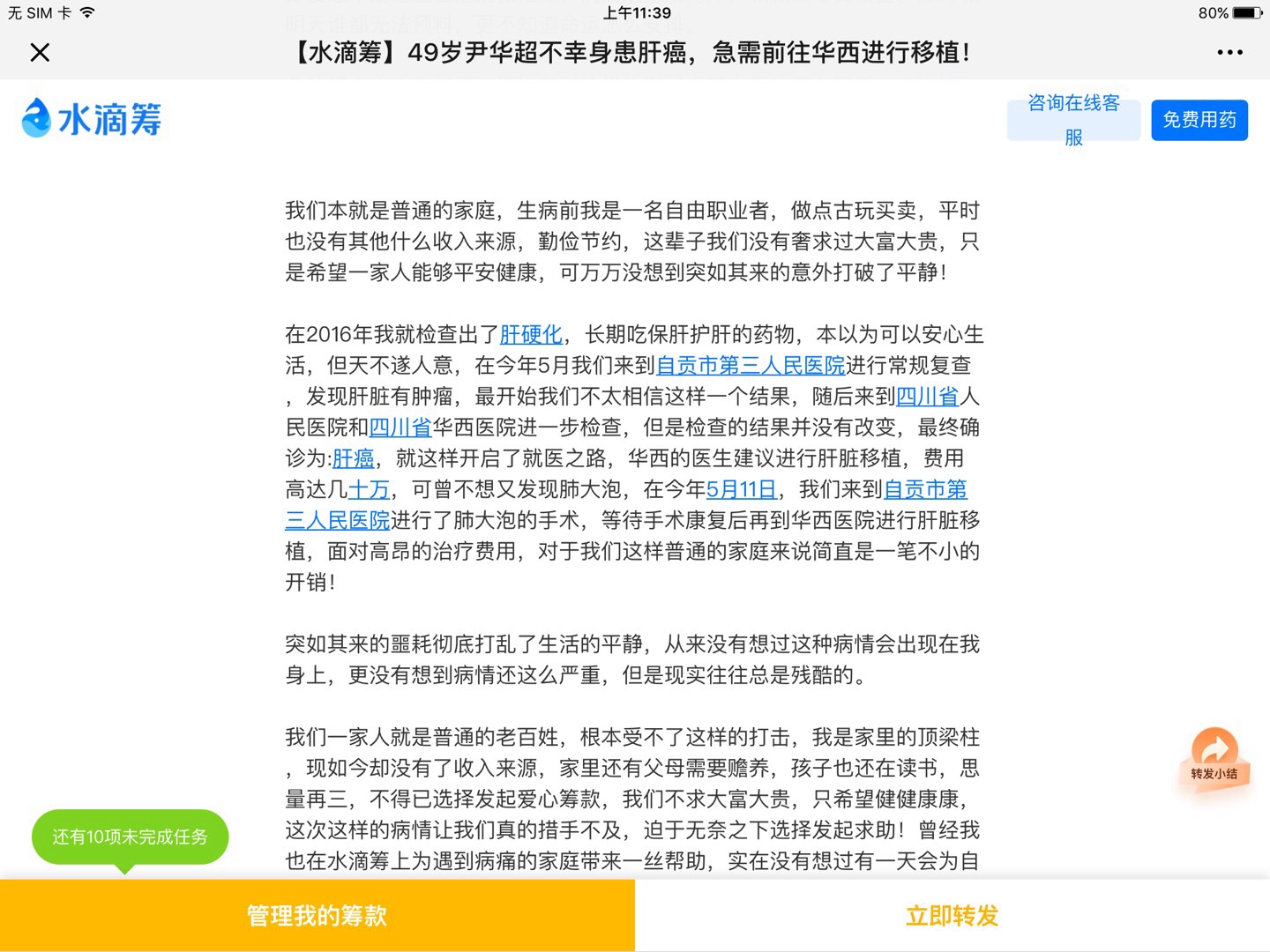 自贡超哥抗癌之路'希望好心泉友援手