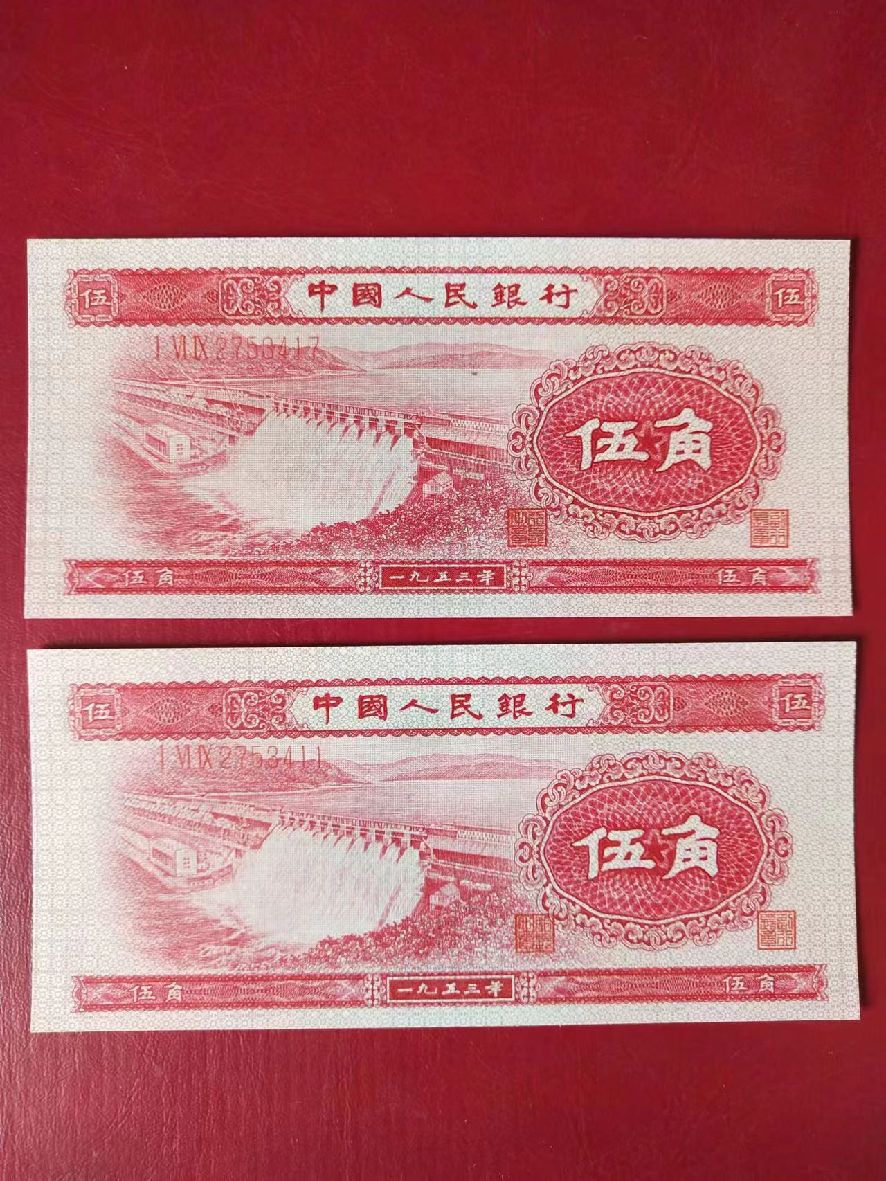 两张断连号,全新直板无折,灯下无斑, 530一张