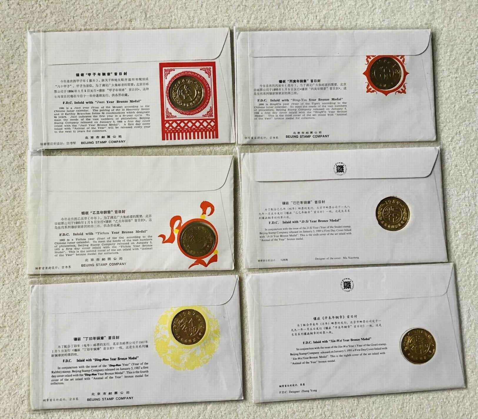 投资资讯网交易在线邮票大卖场JF封/其它类封 → 第一轮生肖镶嵌铜章封6枚