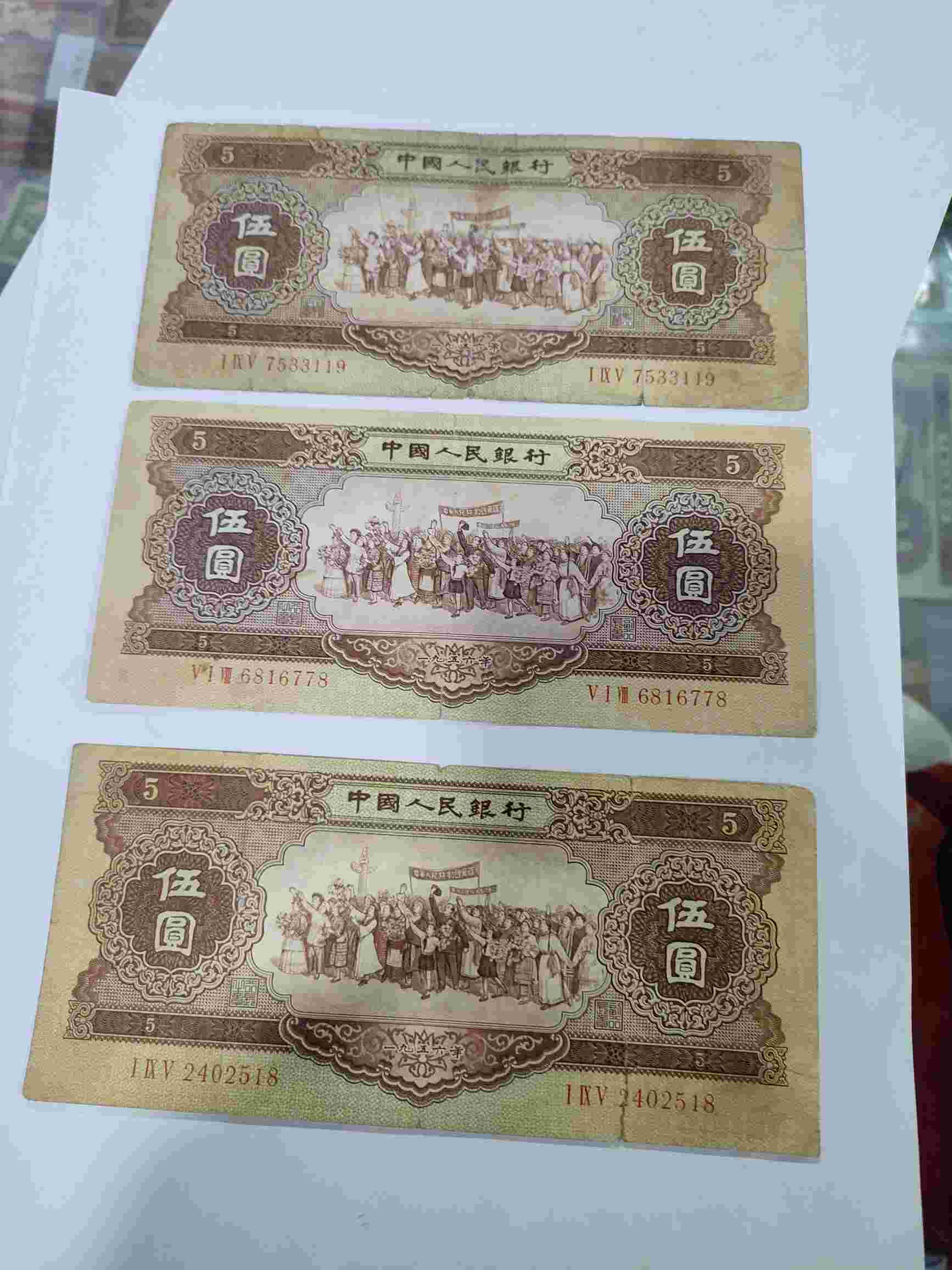 → 出海鸥五元 3张 价1500每张