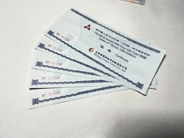 → 90100连体钞5连号 全品