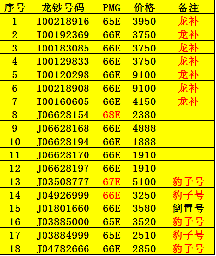 → 龙钞 龙补 豹子号 PMG靓号高分